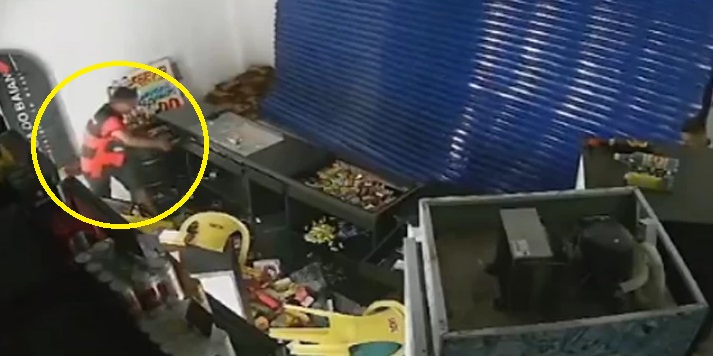 Em menos de três minutos, os assaltantes entraram na loja, reviraram o local e levaram diversos produtos.
