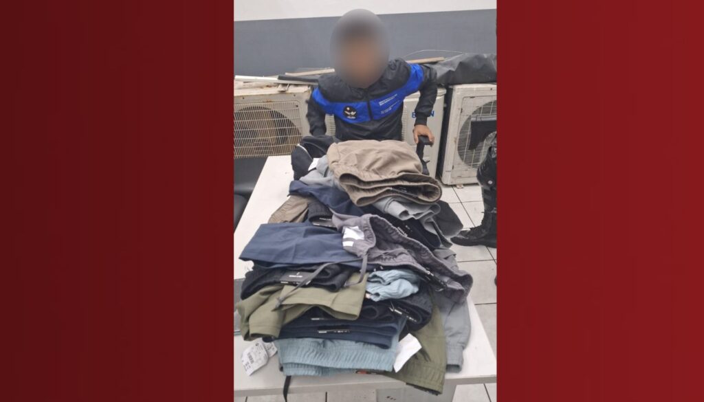 Homem levava diversas peças de roupa ainda etiquetadas e sem nota fiscal.