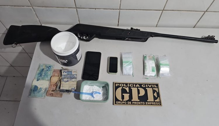 Suspeito também estava em posse de uma arma de fogo.