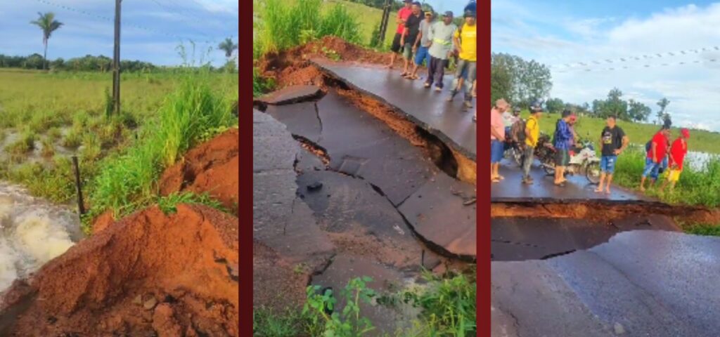 Vídeo: chuvas causam rompimento de rodovia estadual entre Lago Verde e Lago Açu
