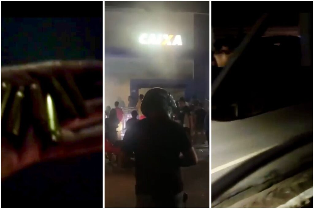 Imagens gravadas pro moradores mostram os criminosos fugindo, além da situação em que a agência ficou.