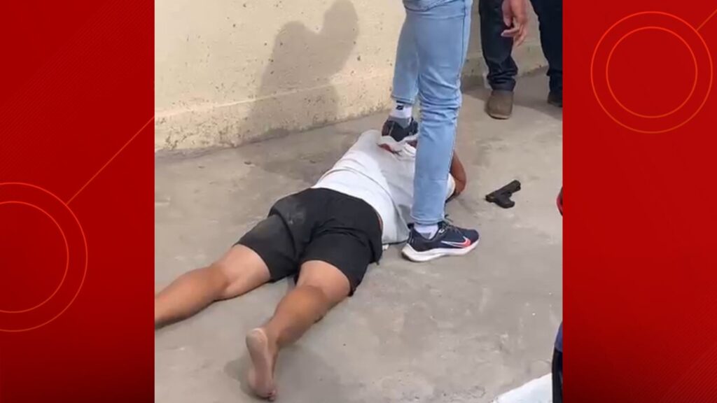 O suspeito foi pego pela própria população após uma tentativa de assalto e surpreendido com vários socos e golpes de facão.
