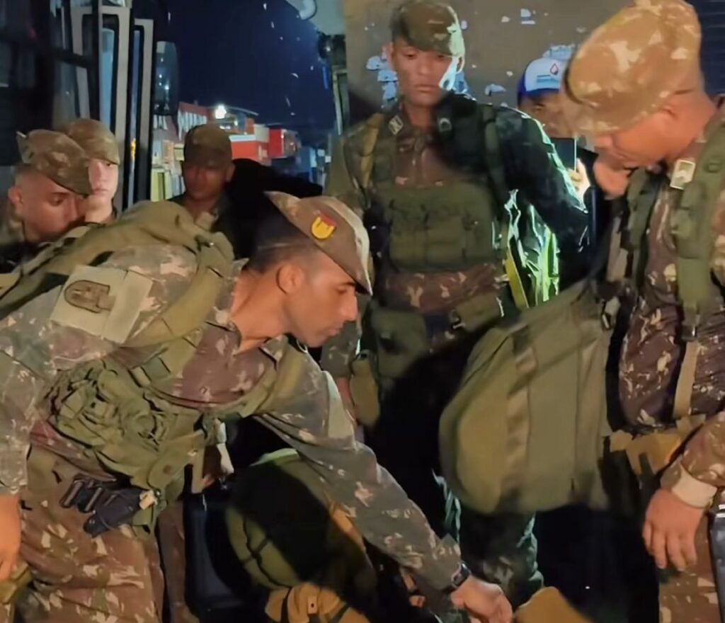 O reforço chegou ao município no fim da noite desta sexta-feira (9) e é composto por 26 militares do Batalhão de Infantaria de Selva, com sede em São Luís, além de 15 policiais do Batalhão Ambiental da PM.
