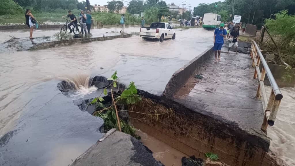 Chuvas causam alagamentos e queda parcial de ponte na Estrada de Ribamar