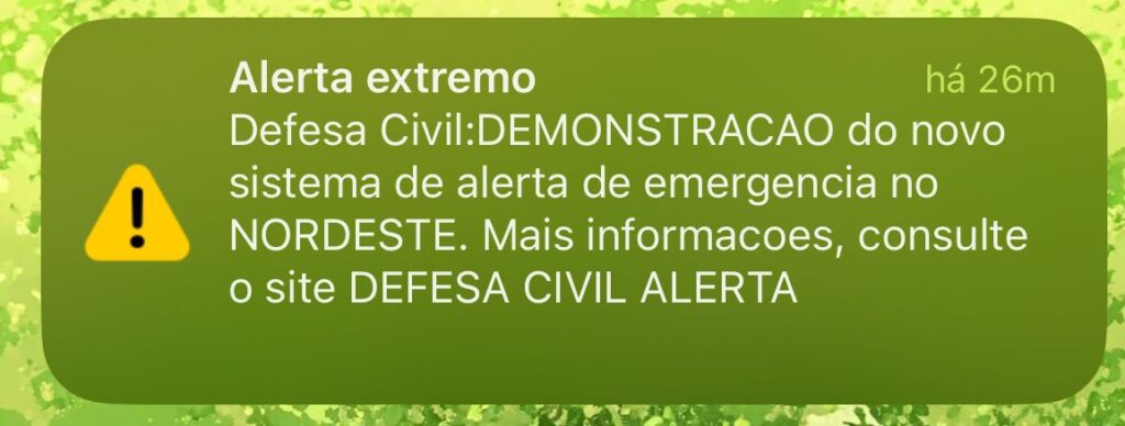 A novidade em relação ao sistema atual, que envia SMS ou mensagens no WhatsApp, é que o alerta se sobrepõe ao conteúdo exibido no celular, e o som toca mesmo em aparelhos no modo silencioso. Segundo a Defesa Civil, recebem a notificação celulares fabricados a partir de 2020 conectados às redes 4G e 5G, sem necessidade de cadastro prévio. A iniciativa já está em funcionamento em estados das regiões Sul e Sudeste do Brasil.