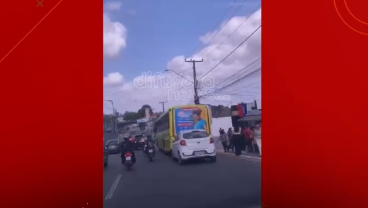 Nas imagens gravadas por motoristas que passavam pelo local, mostram o carro “colado” na traseira do coletivo, e passageiros aguardando por outro ônibus para seguirem viagem.