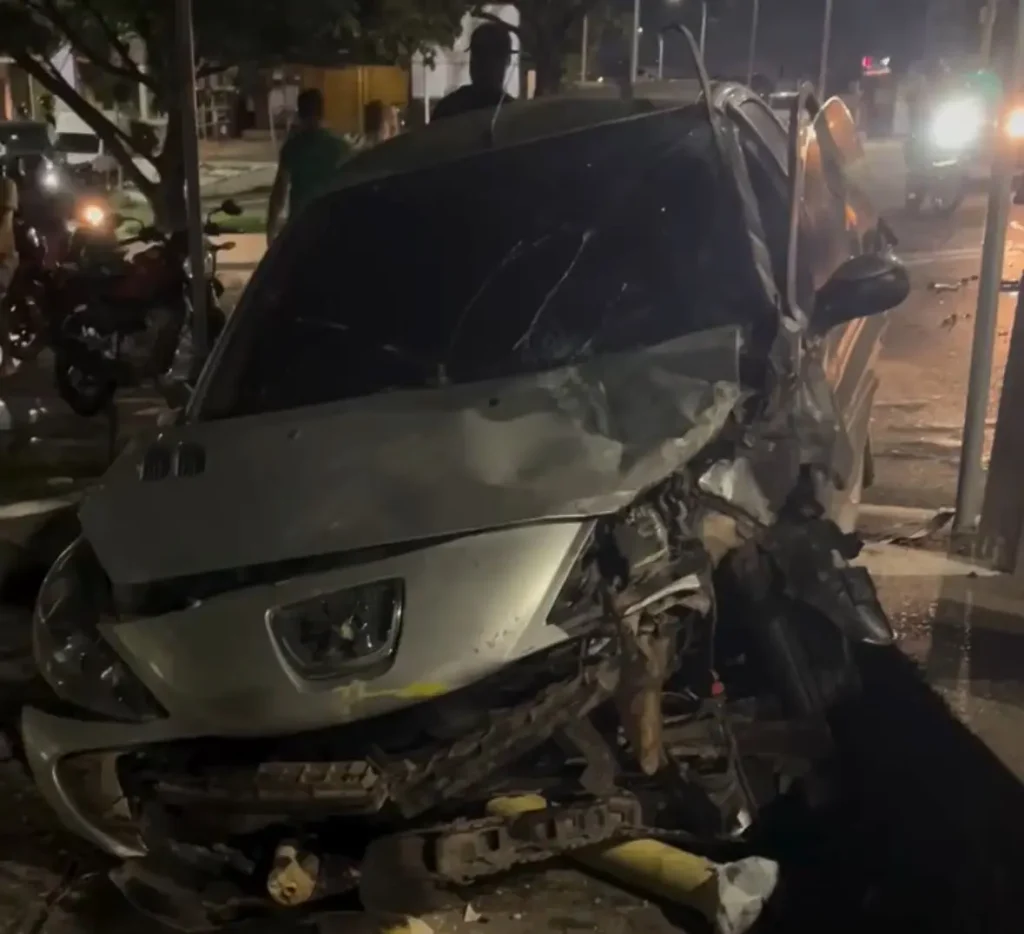 Um acidente de trânsito na noite desta sexta-feira (18) deixou dois carros altamente danificados após colidirem em um trecho da Avenida Jerônimo de Albuquerque, no bairro Angelim, em São Luís. Um dos veículos acabou invadindo um canteiro à margem da via principal, próximo ao local em que funcionam várias lanchonetes.