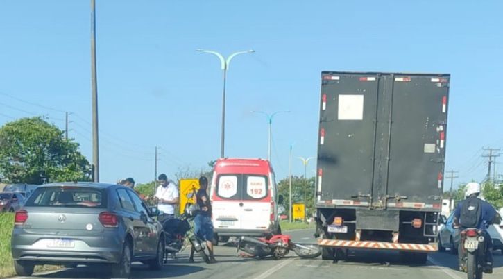 Dois acidentes deixaram pessoas feridas e o trânsito lento em pontos de São Luís na manhã desta quarta-feira (18). Uma das ocorrências aconteceu por volta das 6h20, na Avenida Lourenço Vieira da Silva, próximo à rotatória da Universidade Estadual do Maranhão (UEMA). Segundo as primeiras informações, a vítima, que seria policial militar, fazia atividades física no local do acidente, quando um veículo o atingiu fazendo com que ele caísse na pista. O homem recebeu os primeiros atendimentos de uma equipe do Serviço de Atendimento Móvel de Urgência (Samu) e posteriormente, foi levado a um hospital. Por conta do acidente, o trânsito ficou lento no local, sendo normalizado quase uma hora depois, com o auxílio de agentes da Secretaria Municipal de Trânsito e Transportes (SMTT). Na BR-135 Um motociclista ficou ferido após bater em um caminhão, na altura do km 2,5 da BR-135, próximo à entrada da Vila Funil. Apesar do susto, o condutor da moto teve apenas ferimentos leves. Uma equipe do SAMU foi acionada e fez os primeiros atendimentos à vítima. O acidente também deixou o trânsito lento no trecho da BR-135, no sentido saída de São Luís.