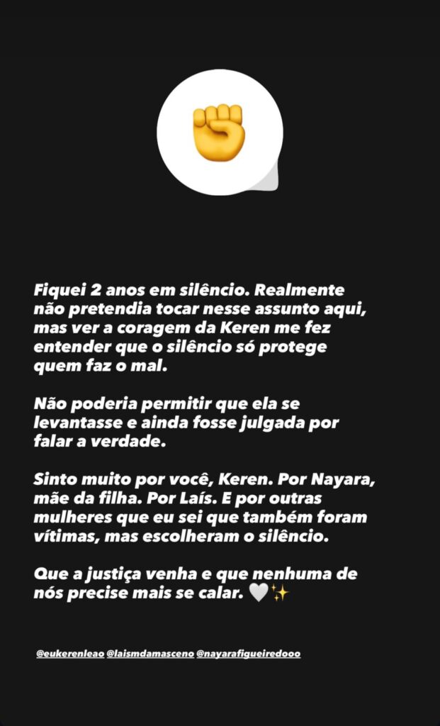 Em nota, o advogado do suspeito, Jefferson Nascimento da Silva, declarou que o caso envolvendo a influenciadora Keren Leão deve ser tratado com cautela e responsabilidade, dada a sua natureza sensível e o fato de ainda estar em apuração.