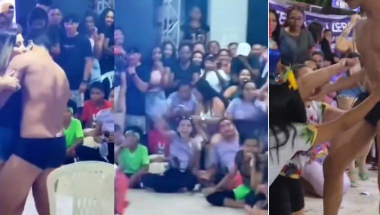 Imagens do evento “Gincana das Mulheres”, realizado no último sábado (29) e promovido pela Secretaria da Mulher de Coelho Neto, mostram os gogoboys fazendo cenas sensuais na frente de mulheres, idosos e até mesmo crianças e adolescentes.
