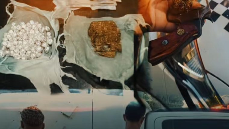 Durante a abordagem, os policiais fizeram buscas e encontraram uma arma de fogo e uma quantidade de drogas que não foi detalhada.