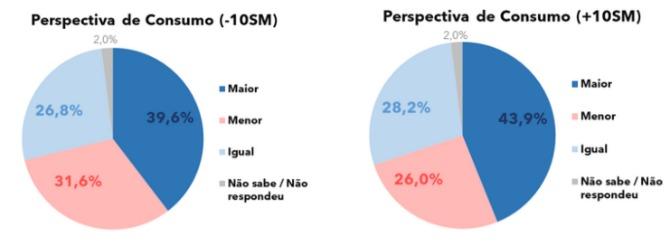 No recorte por gênero, a intenção de consumo das mulheres avançou mais do que a dos homens nas comparações mensal e anual (+1,5% e +22,6%, respectivamente, ante +1,3% e +17,3%). Dentre as mulheres, 41% apontam que pretendem ampliar o consumo nos próximos meses, cenário que alcançou 39,7% do público masculino.
