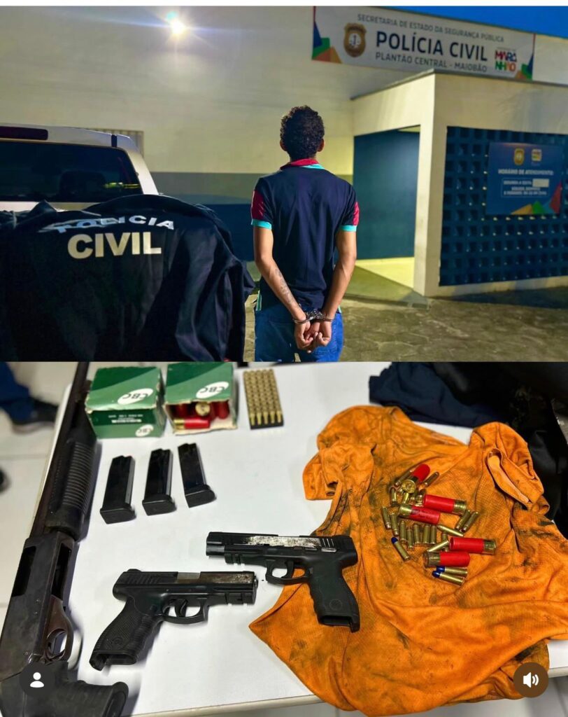 A Secretaria de Segurança Pública do Maranhão-SSP informou, por meio do secretário Maurício Martins, que um dos suspeitos envolvido no ataque foi preso. Com ele, foram apreendidas armas, munições e um fardamento da Polícia Civil que teriam sido utilizados no crime.