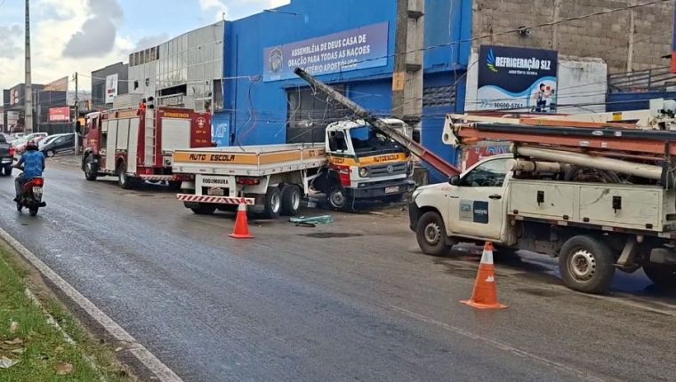 Com a força do impacto, a estrutura cedeu e caiu sobre o caminhão, espalhando fiação pela pista, o que aumentou o risco de acidentes e agravou os transtornos no trânsito. O motorista conseguiu sair do veículo com a ajuda de pessoas que estavam no local. Apesar da gravidade da ocorrência, não houve registro de feridos.
