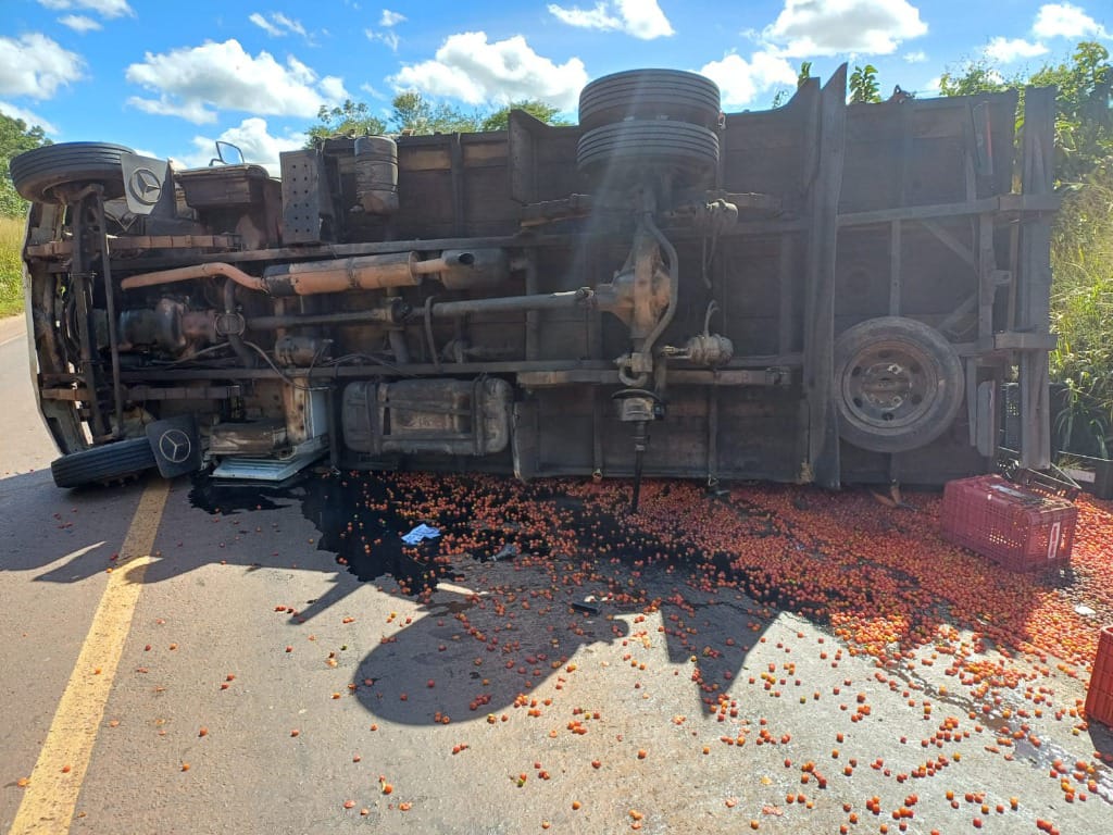 Segundo a Polícia Rodoviária Federal (PRF), o acidente foi ocasionado por uma roda traseira que sacou do caminhão, o que o fez pender para a faixa do sentido contrário. Em seguida, o caminhão tombou e derrubou na via a carga de gradeados de hortifruti que levava.