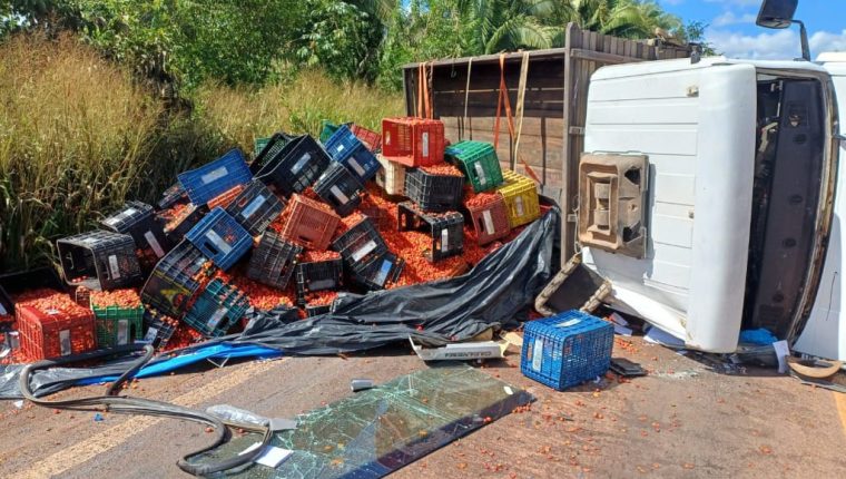 Segundo a Polícia Rodoviária Federal (PRF), o acidente foi ocasionado por uma roda traseira que sacou do caminhão, o que o fez pender para a faixa do sentido contrário. Em seguida, o caminhão tombou e derrubou na via a carga de gradeados de hortifruti que levava.