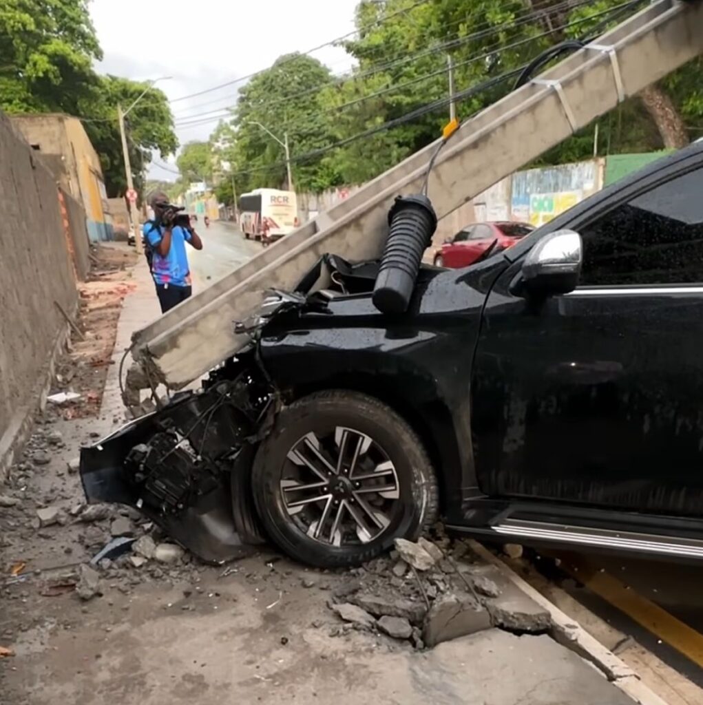 Um carro bateu em um poste na madrugada desta terça-feira (17), na Avenida João Pessoa, no bairro Anil. Segundo informações preliminares, o motorista foi socorrido após o acidente, que destruiu a base do poste e o deixou pendurado na via.