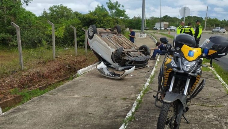 Um carro capotou no início da manhã desta sexta-feira (4), na Via Expressa, em São Luís, após o motorista perder o controle do veículo em uma curva da avenida por conta da pista molhada.