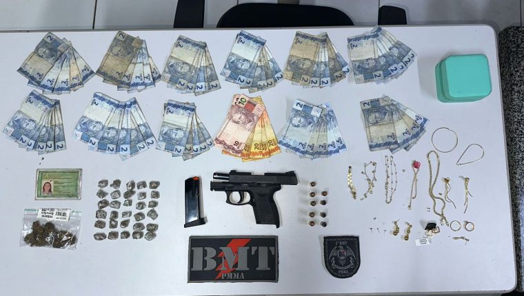 Na noite desta quarta-feira (7), um casal foi preso na região do Maiobão, mais precisamente na Vila Nazaré, município de Paço do Lumiar. A ação foi realizada pelo 1° Batalhão de Motopatrulhamento Tático (1° BMT), da Polícia Militar do Maranhão e faz parte da Operação Saturação, que tem como objetivo intensificar o combate à criminalidade na Grande Ilha. 📲 Clique e participe do nosso canal no Whatsapp Segundo informações da polícia, durante um patrulhamento, as equipes receberam uma denúncia de que uma residência na Rua Olho D’Água estaria sendo usada para o comércio ilegal de drogas e que o principal suspeito também possuía armas de fogo. As guarnições se dirigiram ao local indicado e encontraram um homem em atitude suspeita. Ao perceber a aproximação policial, ele tentou fugir para dentro da casa, mas foi alcançado. Na tentativa de escapar, o suspeito ainda jogou parte do material ilícito por cima de um muro, para um terreno vizinho. No entando, a polícia conseguiu recuperar a substância, identificada como skunk, além de uma quantia em dinheiro. O homem resistiu à abordagem e precisou ser contido com uso moderado da força. Durante a revista na residência, os policiais encontraram 30 trouxas de substância semelhante à maconha, além de uma pistola calibre 40 com munições escondida no quintal da casa. Também foram apreendidos outros objetos: joias, um porta-joias, dinheiro e outros objetos de valor que foram confiscados. A companheira do suspeito, que estava na casa no momento da ação, também foi detida. Os dois foram encaminhados para a delegacia local onde permaneceram à disposição da Justiça.