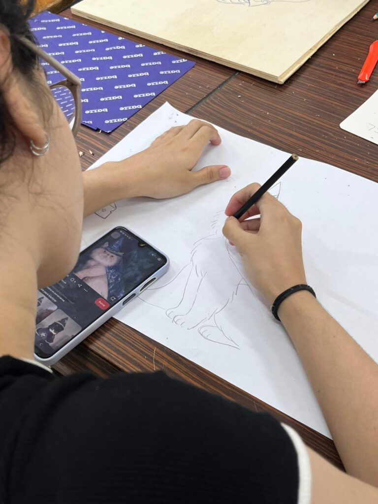 As oficinas gratuitas são realizadas no período da tarde e reúnem 17 participantes selecionados, todos maiores de idade e com noções de desenho. A ação formativa promove a vivência do processo completo de criação e impressão em madeira, em um ambiente que une aprendizado coletivo, tradição e experimentação.