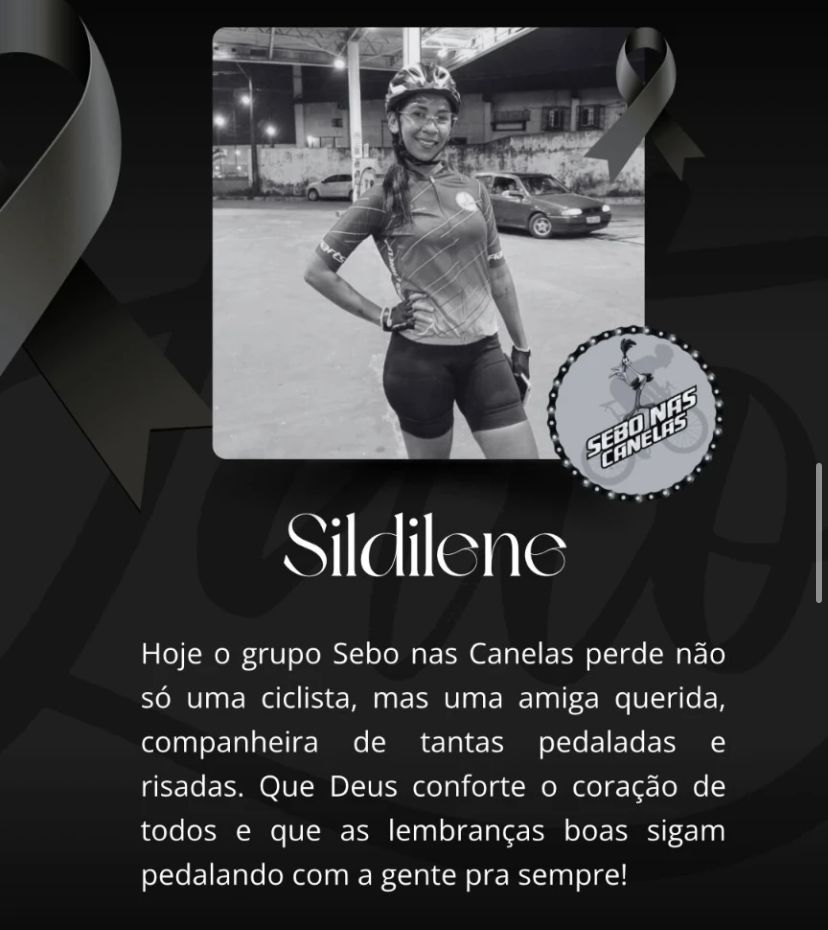 Nas redes sociais, o grupo de Ciclismo, que Sildilene fazia parte, divulgou nota de pesar sobre a morte da ciclista. “É com grande tristeza que recebemos a notícia do acidente que levou nossa querida amiga ciclista Sildilene. Sua paixão pela bike e seu espírito aventureiro sempre nos inspiraram”, escreveu o grupo.