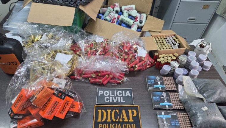 Policiais apreenderam mais de 3.500 munições e insumos nos endereços investigados.