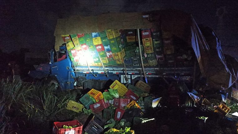 O caminhão estava carregado com gradeados de verduras. Com o impacto, dois passageiros que estavam no caminhão — ambos homens — ficaram feridos. Um deles teve ferimentos leves, e o outro foi socorrido em estado grave. Os motoristas dos dois veículos não se feriram.
