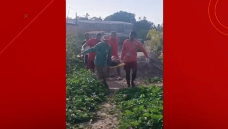 Veja o momento que a equipe do Corpo de Bombeiros faz a retirada do corpo: