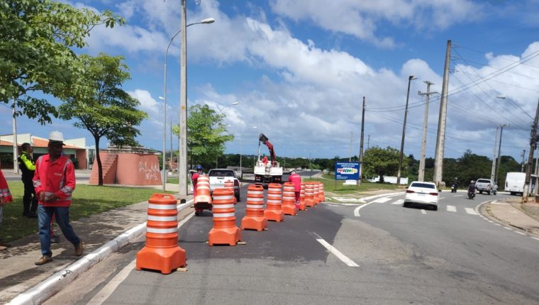 O tráfego de veículos na alça de retorno para o bairro da Vila Palmeira segue interditado.