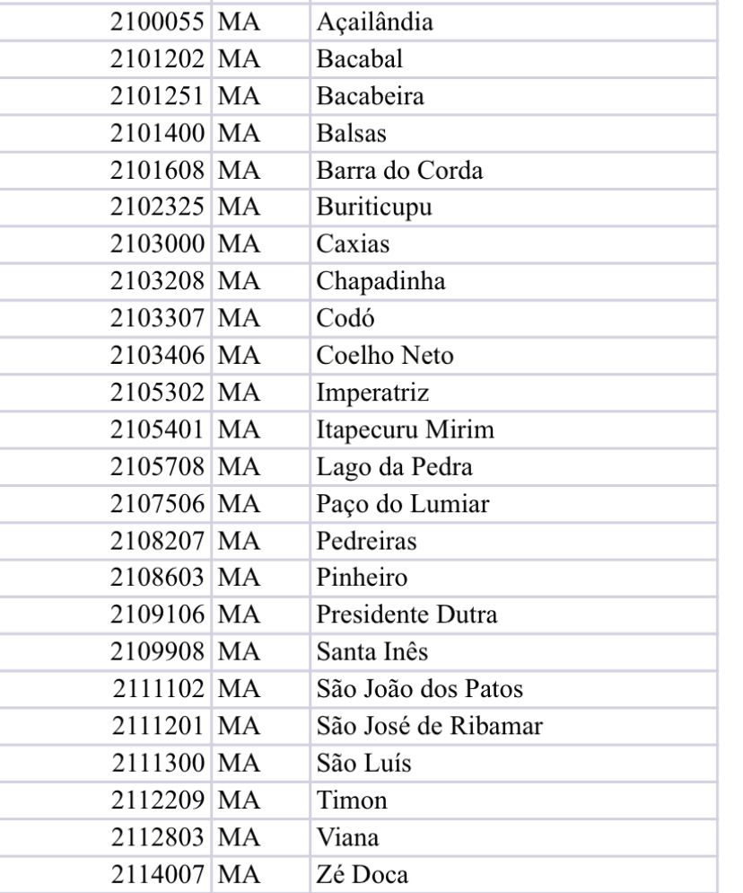 A PND será aplicada na capital São Luís e em outros 22 municípios maranhenses. Confira abaixo a relação das cidades de aplicação do exame: