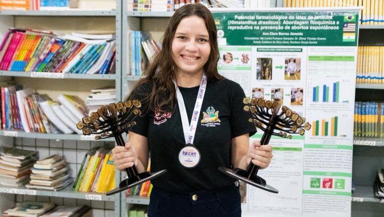 O projeto “O potencial farmacológico do látex da janaúba (Himatanthus drasticus): uma abordagem fitoquímica e reprodutiva na prevenção de abortos espontâneos”, produzido pela estudante, foi premiado em 1° lugar na Feira de Ciências realizada no Paraná, em setembro.