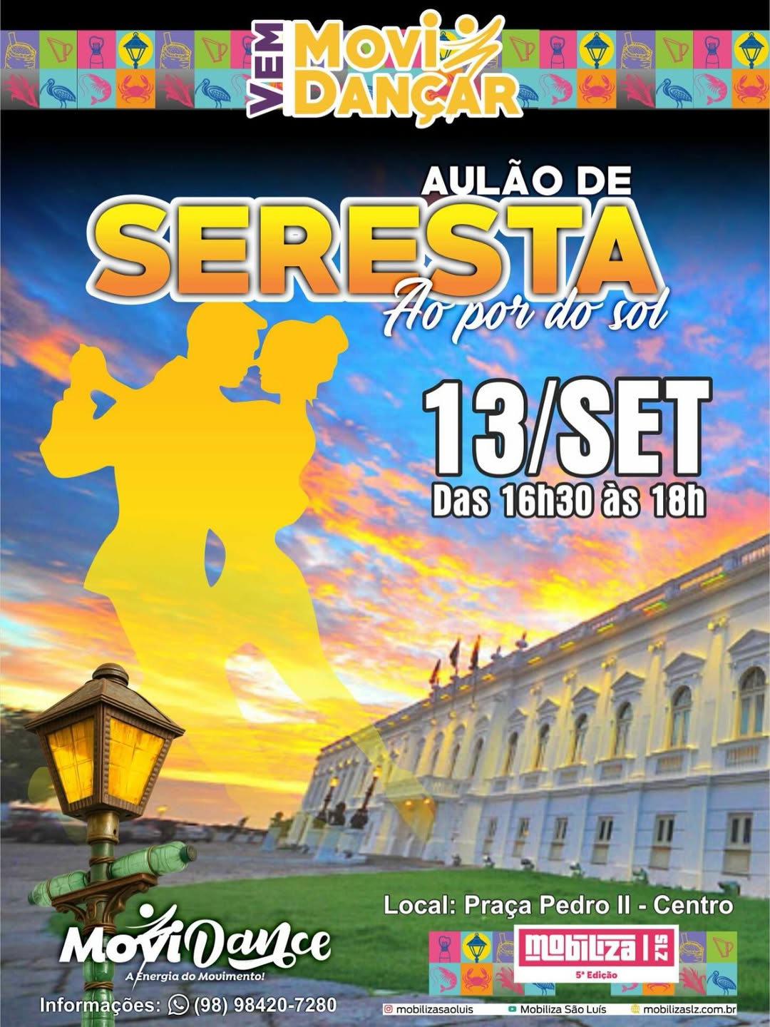 O entardecer vai ganhar um brilho especial no coração de São Luís! Como parte do Projeto Mobiliza 2025, a Praça Pedro II será tomada por uma aula de Seresta Maranhense ao pôr do sol e pela energia de quem acredita que dançar é transformar momentos em memórias.