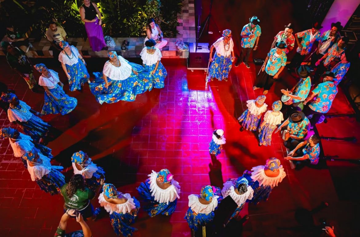 É noite de corpo em movimento, tambor chamando e tradição viva, com capoeira, boi e cultura popular se encontrando no mesmo espaço.