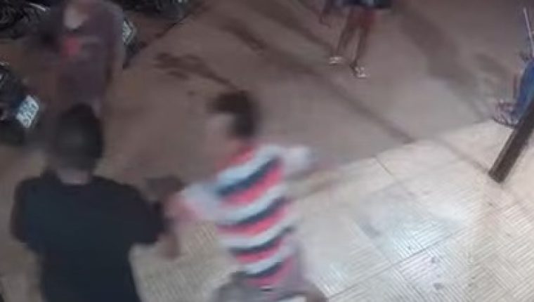 Câmeras de segurança do estabelecimento registraram o início da discussão e o momento em que um dos suspeitos efetua diversos golpes de faca contra a vítima.