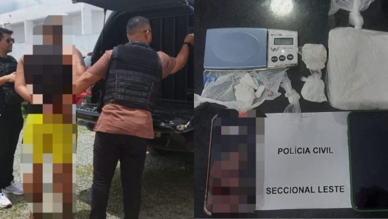 Um homem considerado foragido do sistema penitenciário maranhense foi preso nesta terça-feira (1º), no bairro da Maiobinha, em São Luís. Segundo a polícia, o homem havia rompido a tornozeleira eletrônica em outubro de 2024 e estava desde então, estava foragido. A operação foi conduzida por uma equipe de policiais civis da Seccional Leste, vinculada a Superintendência de Polícia Civil da Capital (SPCC). O homem foi preso após informações anônimas repassadas ao Disque Denúncia Maranhão. 📲 Clique AQUI e participe do nosso canal no WhatsApp. No apartamento onde o foragido morava com a companheira, os investigadores apreenderam uma grande quantidade de cocaína, uma porção de Skank, conhecida como ‘supermaconha’, além de materiais utilizados no tráfico de drogas. O homem foi conduzido à delegacia, onde foi autuado pelos crimes de produção, distribuição e tráfico de drogas ilícitas.