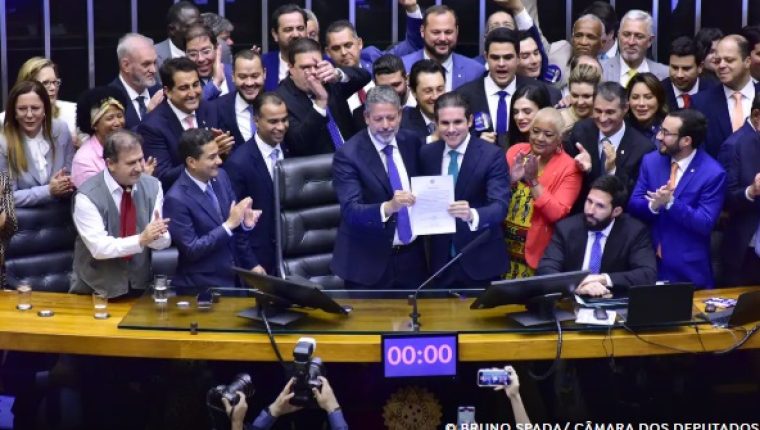 Apesar da expressiva votação, o número ficou abaixo do recorde registrado por Arthur Lira (PP-AL) em fevereiro de 2023, quando o ex-presidente da Casa foi reeleito com 464 votos.