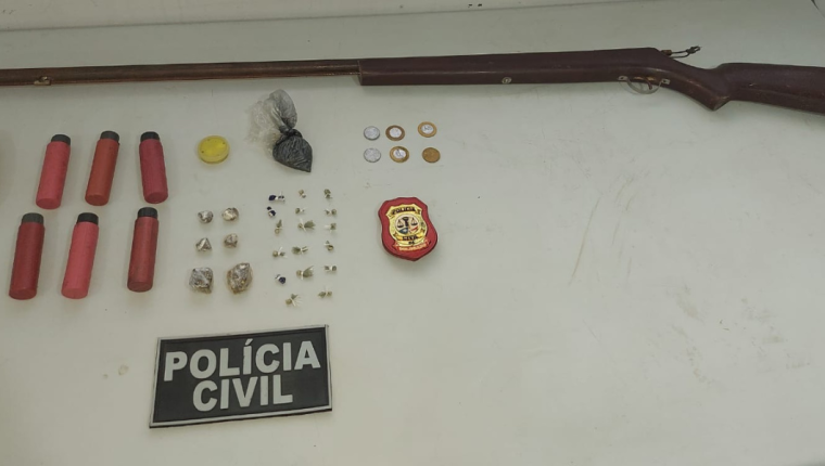 Além das drogas, os policiais encontraram uma espingarda de fabricação artesanal e seis munições.