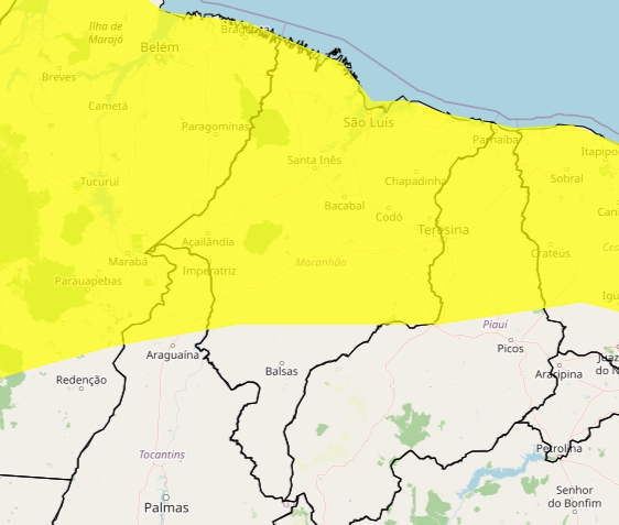 O Instituto Nacional de Meteorologia (Inmet) emitiu, na manhã desta quinta-feira (30), um novo alerta amarelo para chuvas intensas que atinge grande parte do Maranhão. O aviso de perigo potencial é válido até as 23h59 e engloba 209 municípios maranhenses.