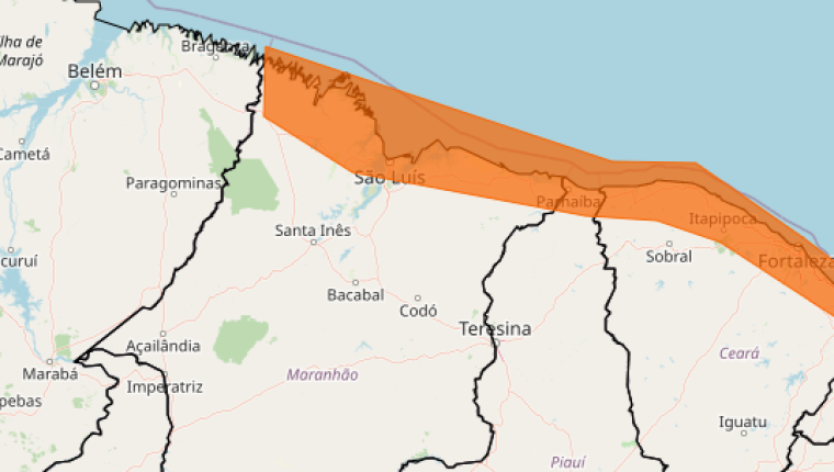 O Instituto Nacional de Meteorologia (INMET) emitiu um alerta para chuvas intensas em 43 cidades do Maranhão. O aviso, válido até as 23h59 desta quarta-feira (5), prevê precipitações entre 30 e 60 mm/h ou 50 e 100 mm/dia, além de ventos fortes, que podem variar de 60 a 100 km/h.