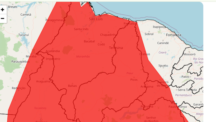 O Instituto Nacional de Meteorologia (Inmet) emitiu, nesta quarta-feira (4), um alerta vermelho de grande perigo para chuvas intensas em diversas regiões do Maranhão. O aviso indica previsão de precipitação superior a 60 milímetros por hora ou acima de 100 milímetros por dia.