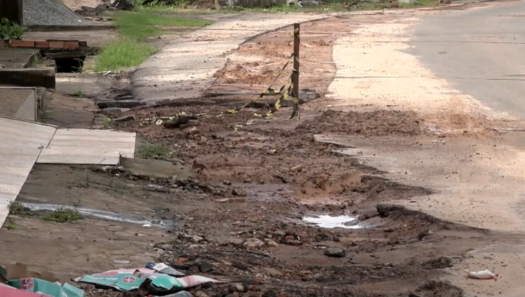 De acordo com Luís Palavra, morador da região, a intervenção durou 15 dias e, após a conclusão, problemas estruturais começaram a afetar as residências. “A rua ficou sete dias sem abastecimento de água. Além dos buracos deixados pela obra, a água de esgoto tem invadido o beco da minha casa”, relatou.