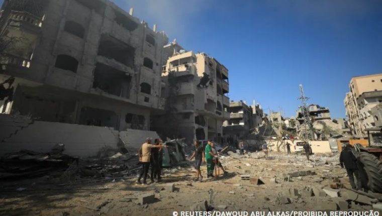 A guerra entre as forças Israelenses e o Hamas destruiu grande parte da Gaza fortemente urbanizada, matou mais de 46 mil pessoas e deslocou várias vezes a maior parte da população de 2,3 milhões do enclave antes da guerra, de acordo com as autoridades locais.