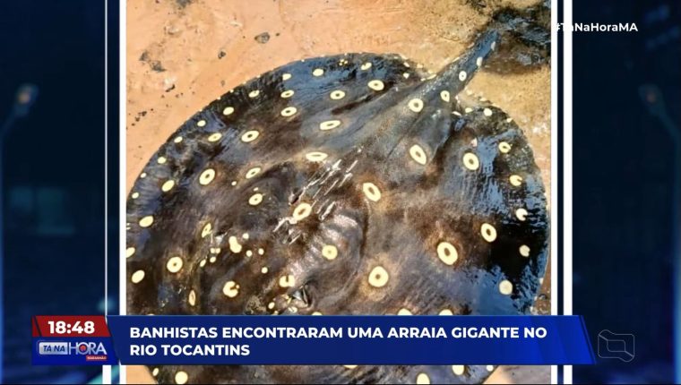 Uma arraia gigante chamou atenção de banhistas que estavam às margens do Rio Tocantins, nas imediações da ponte Dom Afonso Felipe Gregory, em Imperatriz. O animal foi visto nadando próximo à área onde várias pessoas tomavam banho.
