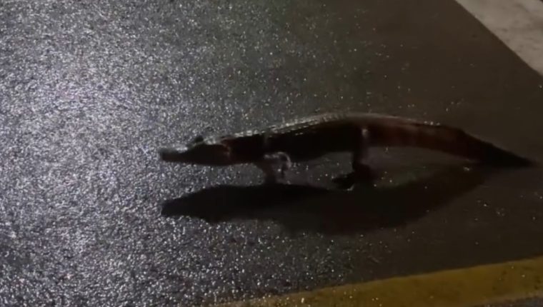 Um jacaré foi visto passando pela avenida Litorânea, na noite do último domingo (7). O animal transitava próximo ao sinal da praia do Olho D’Água, no meio da rua. O registro foi feito por um motociclista que estava passando pelo local e se deparou com o réptil.
