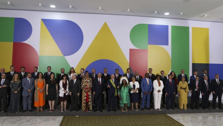 Na cerimônia de posse dos novos ministros, depois da assinatura do documento por eles e pelo presidente, a equipe posou para a foto oficial. A nova estrutura de governo é composta por 37 ministérios.