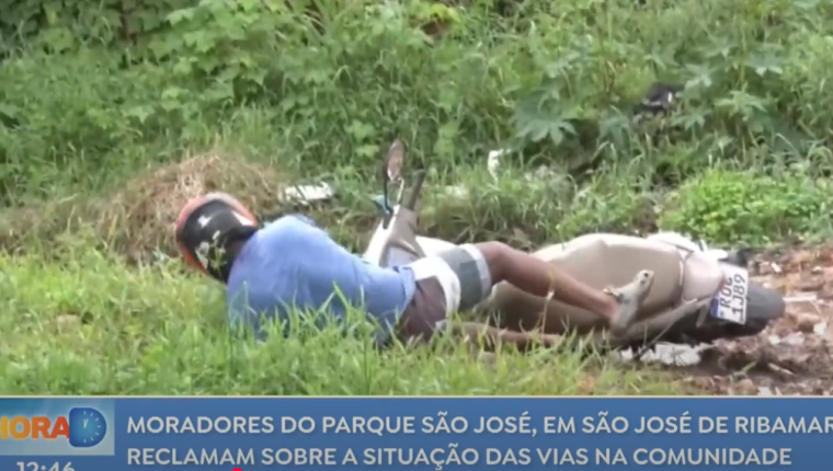 Enquanto a equipe da TV Difusora gravava no local, um motociclista foi flagrado caindo devido aos inúmeros buracos na via. Ele chegou a se sujar com lama e também se machucar com impacto da queda.