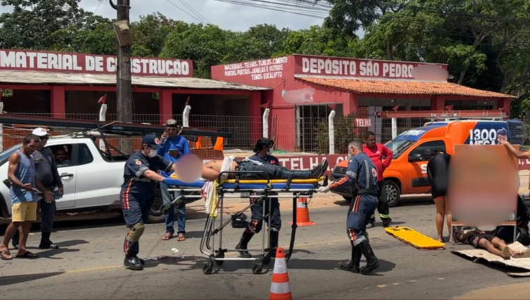 Um acidente envolvendo três veículos deixou um motociclista de aplicativo gravemente ferido na tarde desta segunda-feira (5) na Estrada da Maioba, em São José de Ribamar. A vítima bateu com a cabeça no asfalto e ficou desacordada.