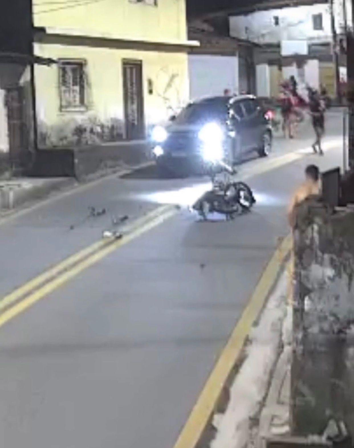 Todo o acidente foi registrado por câmeras de segurana da rua. O condutor da motocicleta acabou invadindo a contramão da via, quando ele se choca de frente com outro veículo. O impacto foi forte e ele cai imediatamente ao chão.