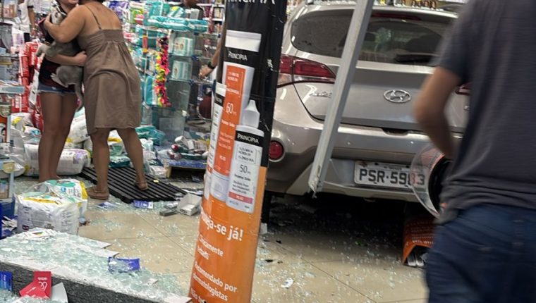Na noite deste domingo(15), um carro invadiu uma farmácia localizada na Avenida dos Holandeses, no bairro do Caolho, em São Luís.