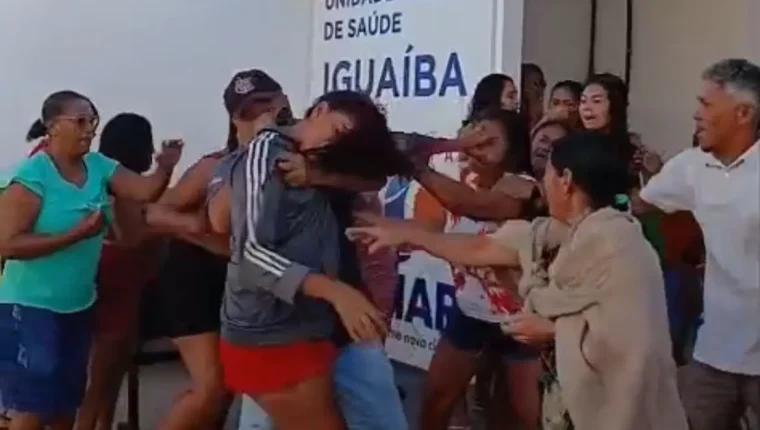 Duas mulheres iniciaram uma briga em frente a uma Unidade Básica de Saúde (UBS) no bairro Iguaíba, nesta quinta-feira (18), por conta de senhas que estavam sendo distribuídas na fila de atendimento.